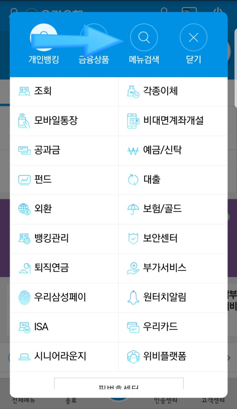 다시 화살표 방향에 메뉴 검색을 누르십니다!!