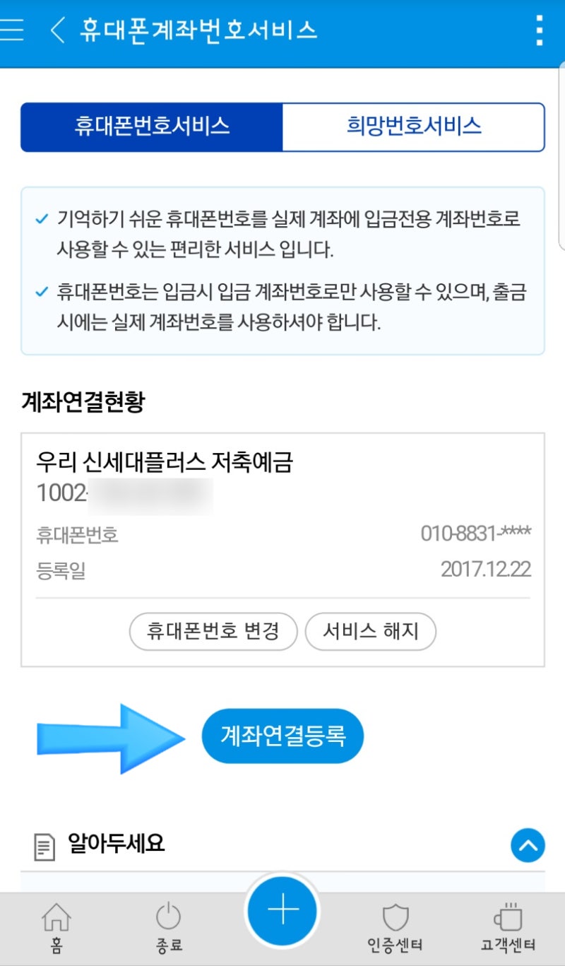 화살표 방향에 계좌 연결 등록을 클릭