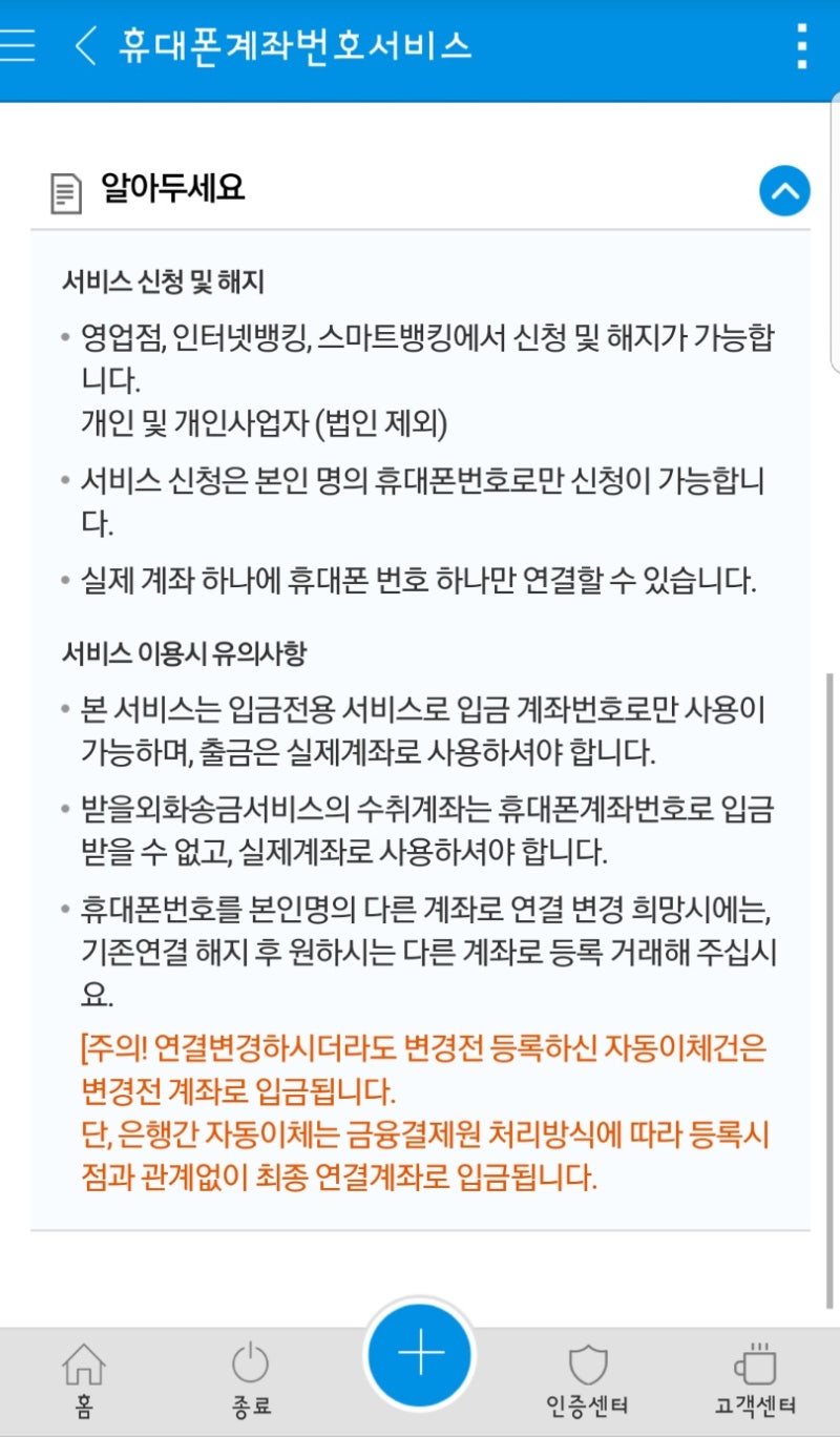 #휴대폰계좌번호서비스 라고 뜨는 링크를 클릭해 주십니다.