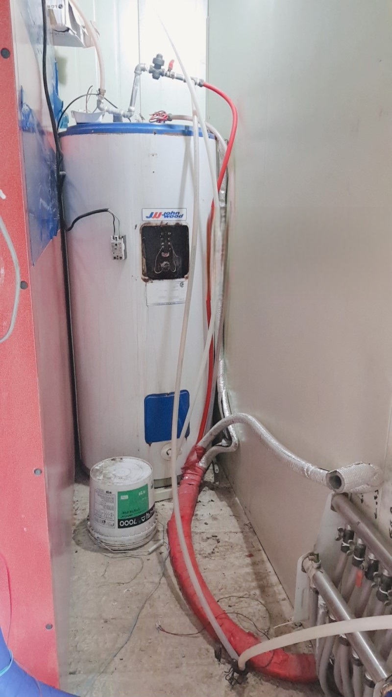 공장 기숙사의 산업용 전기온수기 교체 작업입니다.