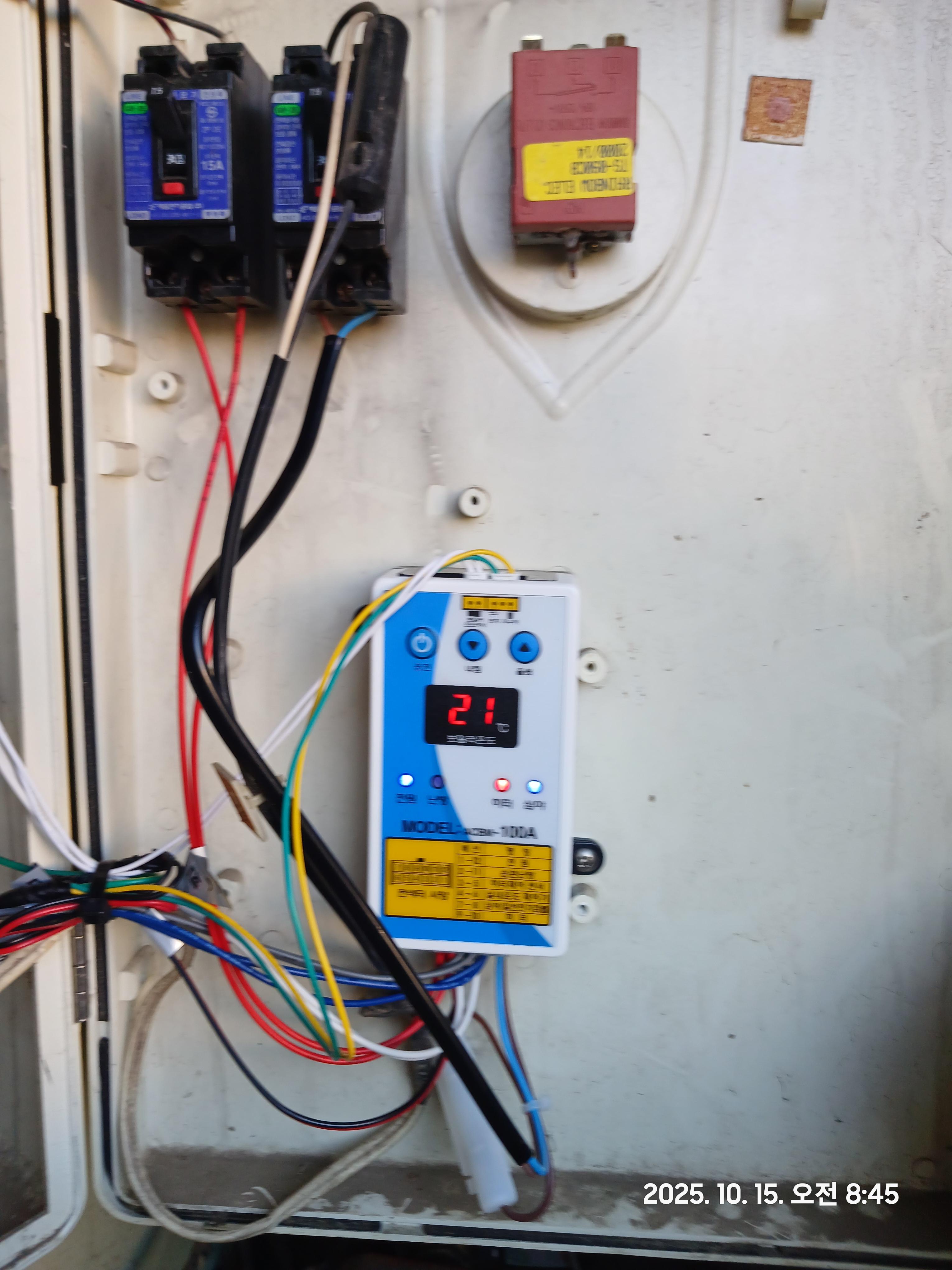 수리 내용: ACBR-100A 통합제어기 교체 불안정한 기존 수온센서, 과승센서, FL01 같은 FL센서 제어 시스템을 모두 철거하고, 최신형 순환펌프 통합제어기인 'ACBR-100A' 모델로 교체 작업을 진행했습니다.
